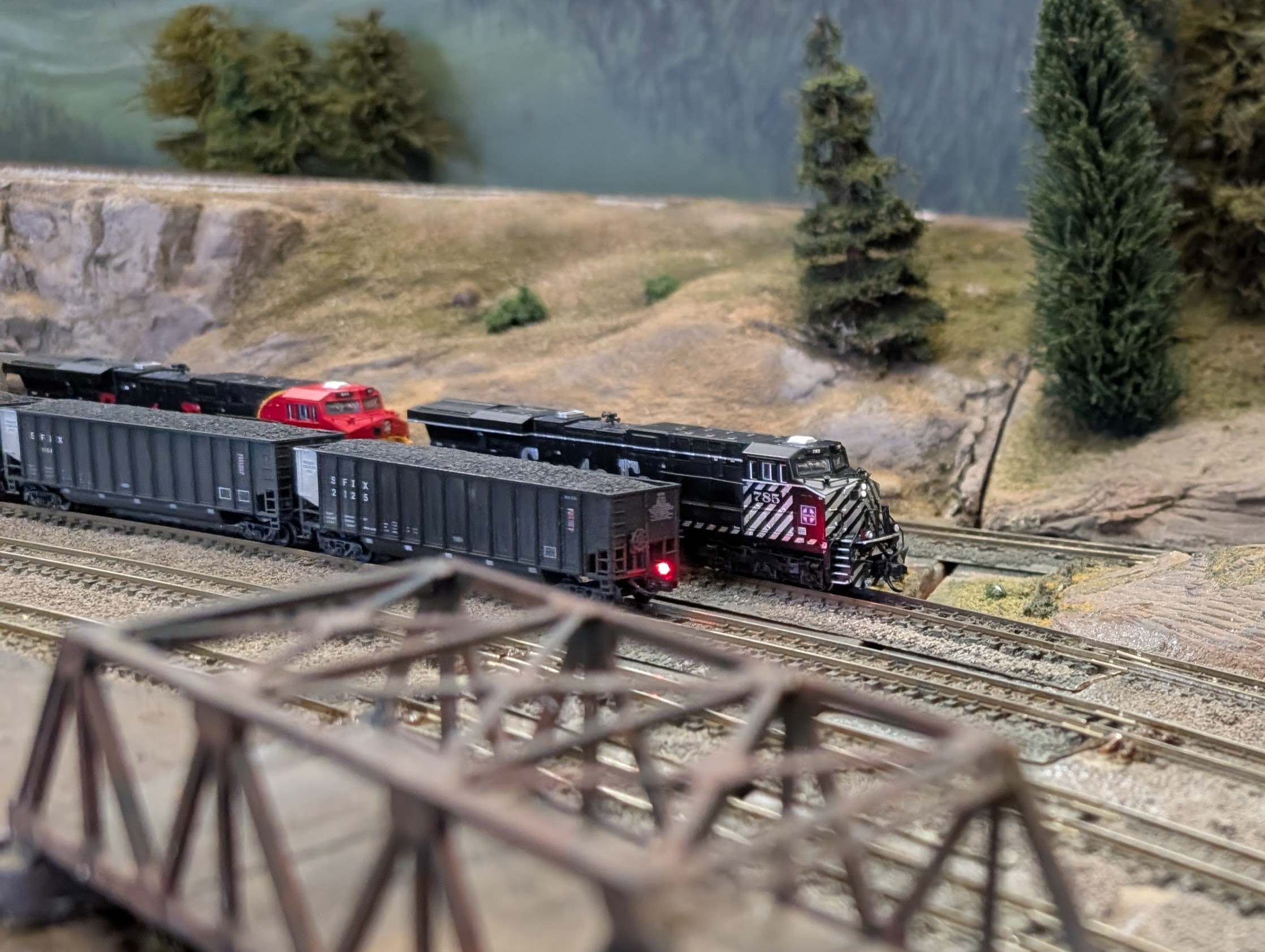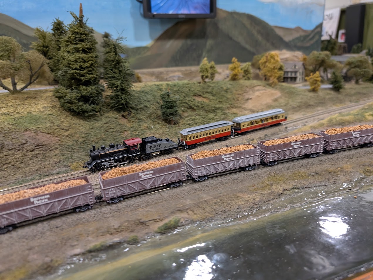 Group 160’s layouts are modular in nature; we do not have a permanent layout, but rather we bring modules to shows. We follow the NTRAK 2000 standard for most of our modules, which is an older version of the NTRAK standards characterized by slightly wider modules with more room between tracks.