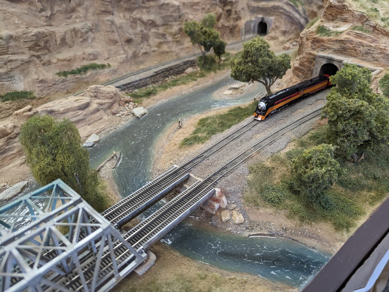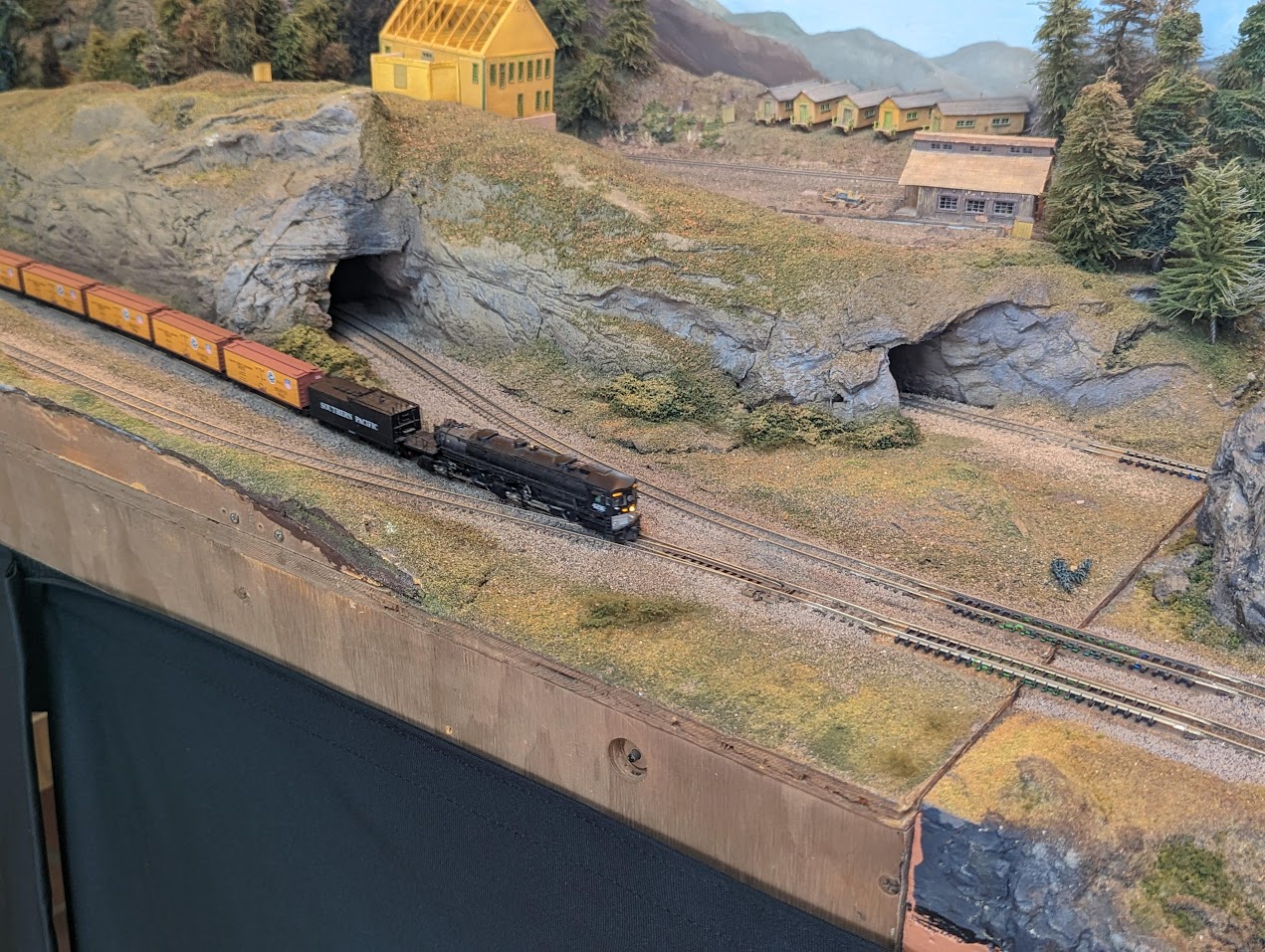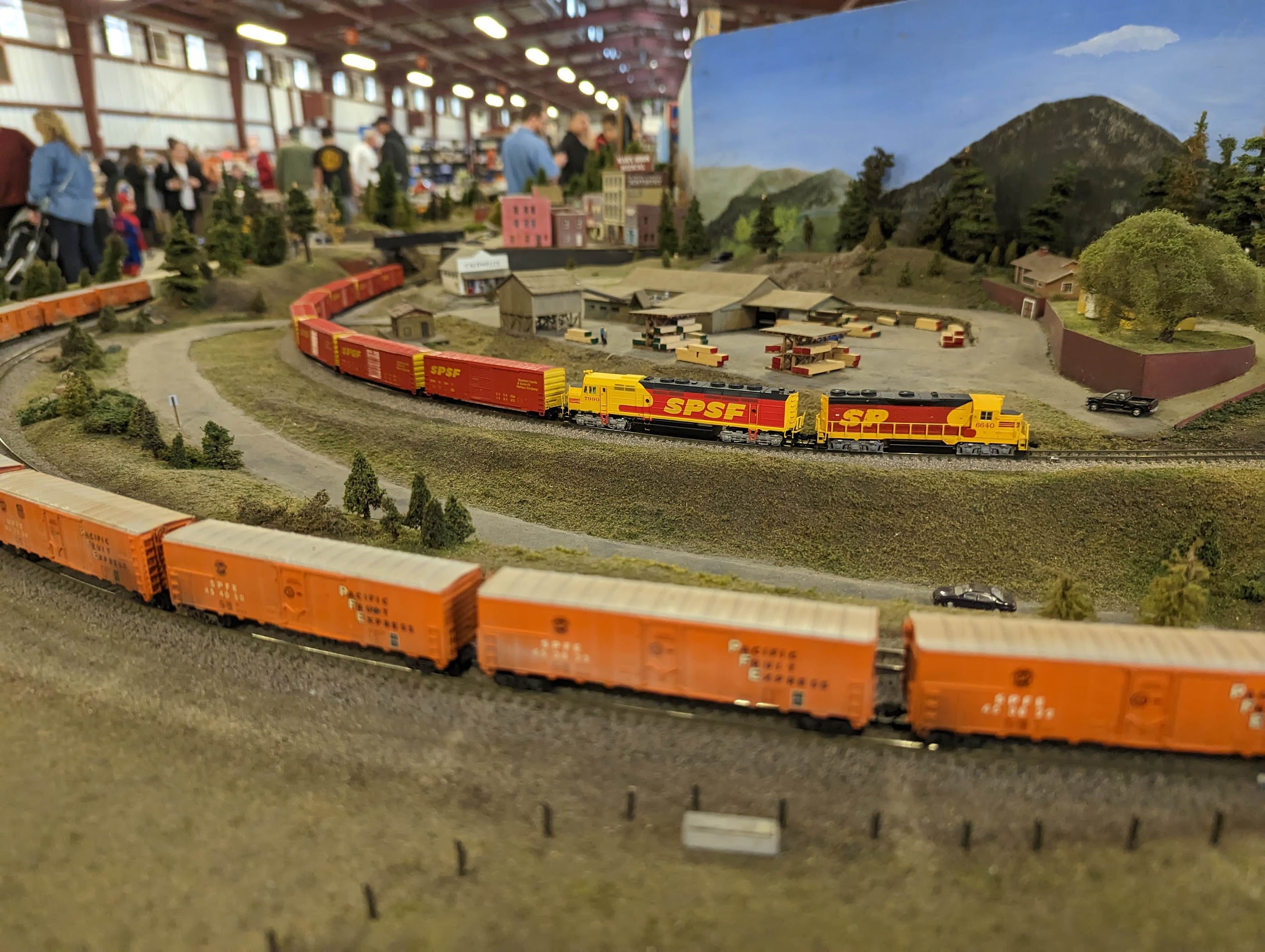 The remainder of the layout modules are owned by individual members of the club. Members’ modules express a broad range of interests including: small towns & industries, orange groves and fruit packing, a gorge, and even the English countryside. There are no rules when coming up with the theme for a member-owned module, save one: Have fun!